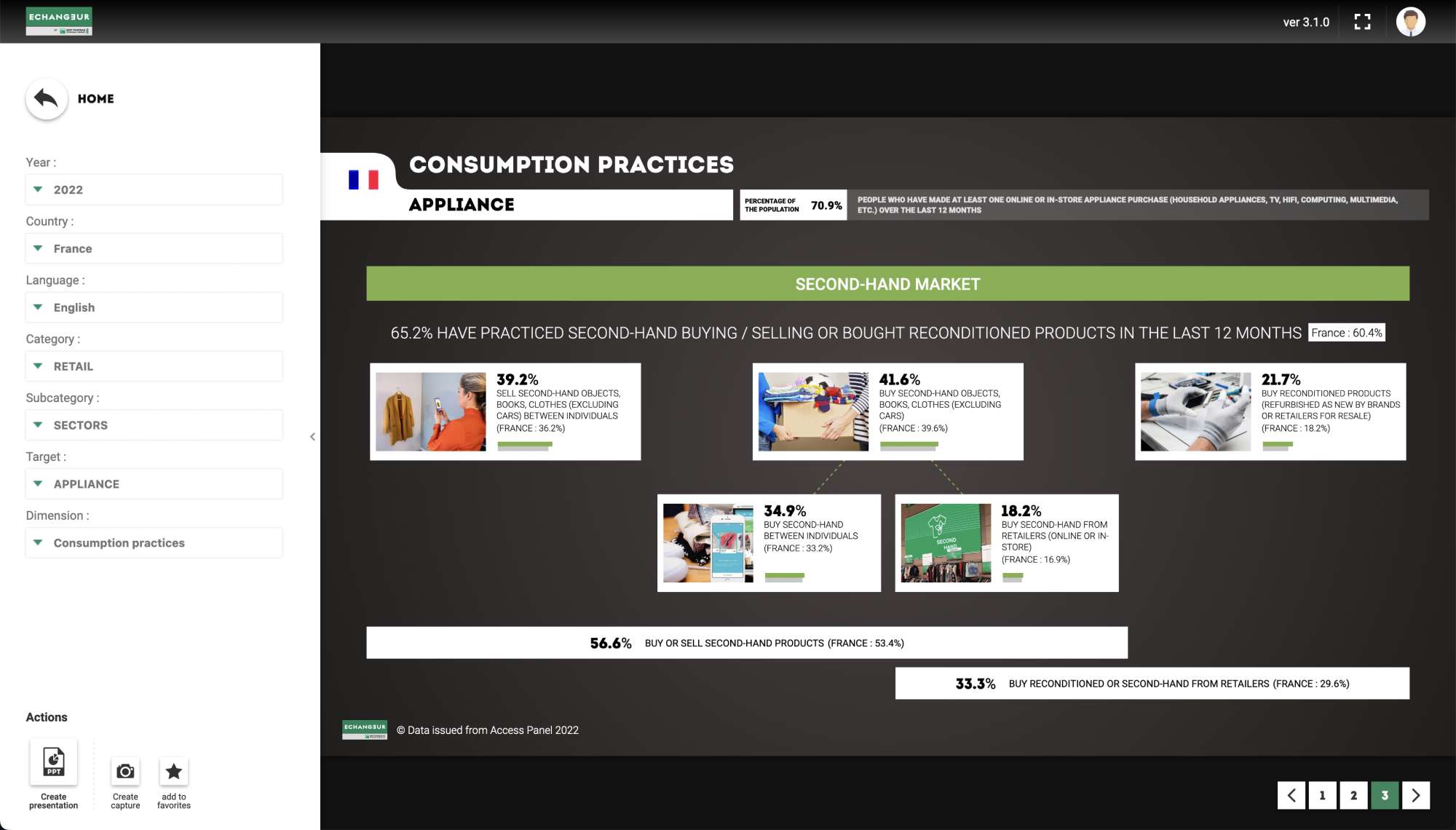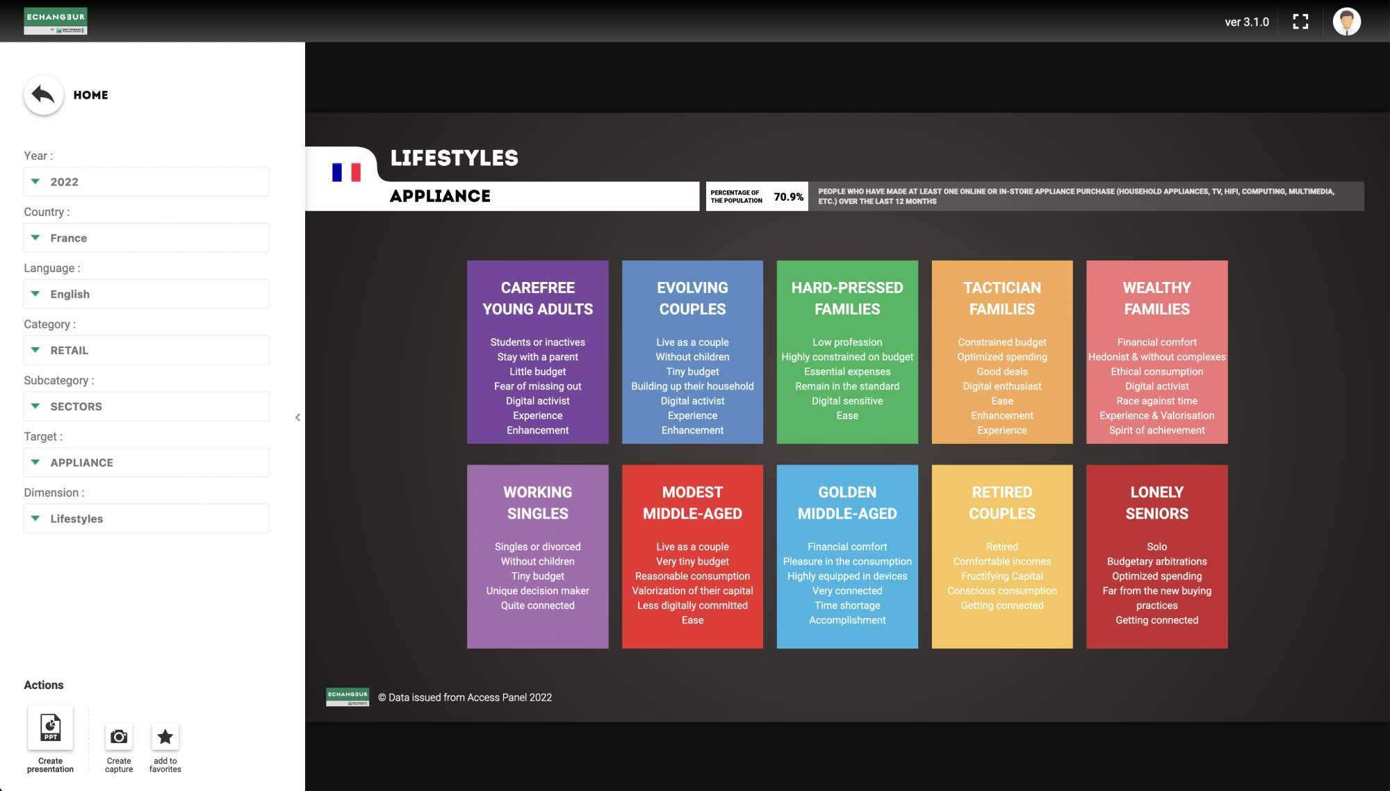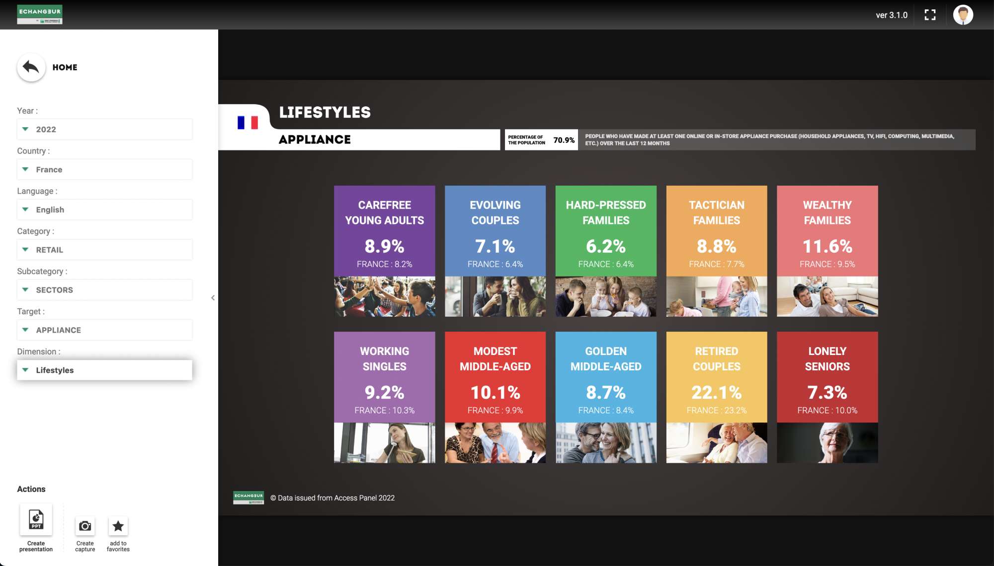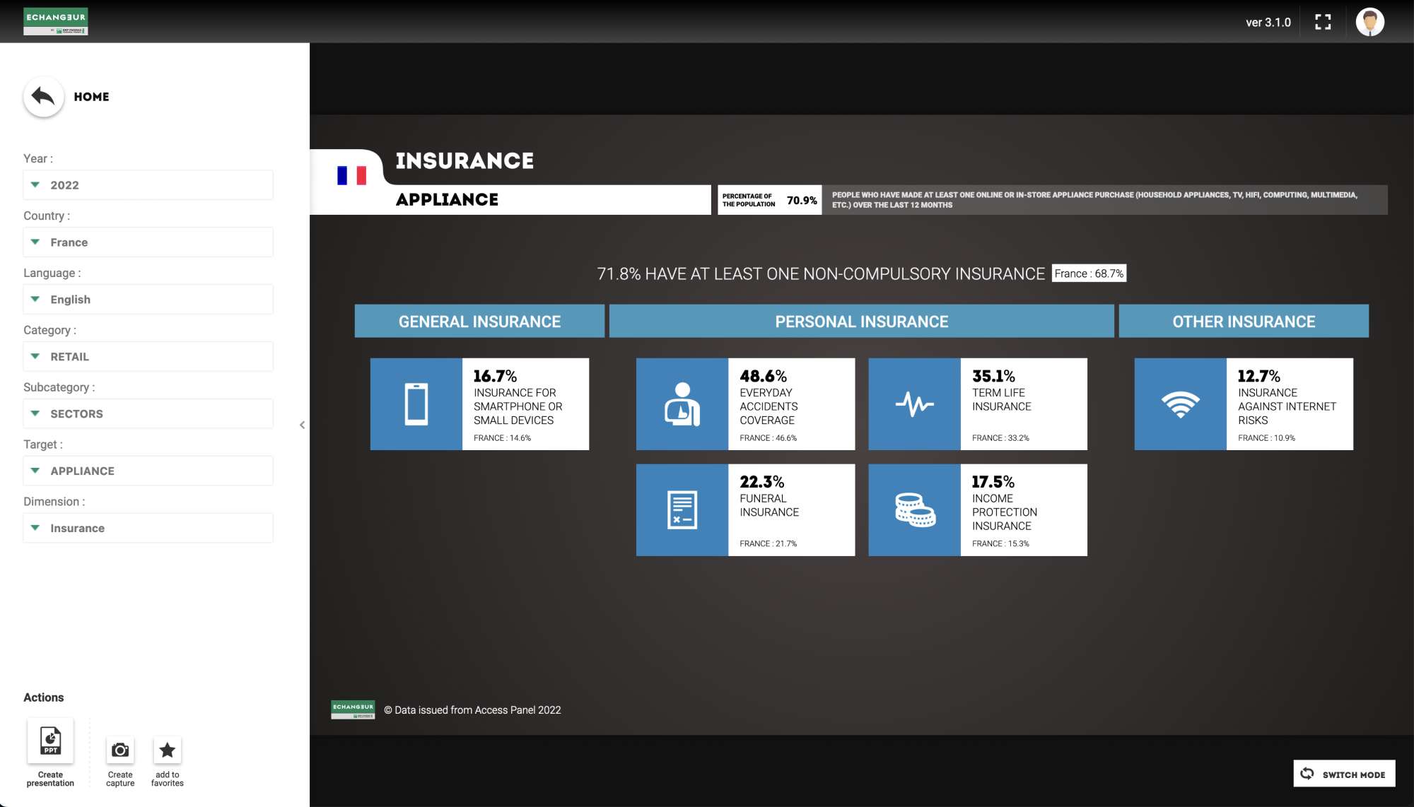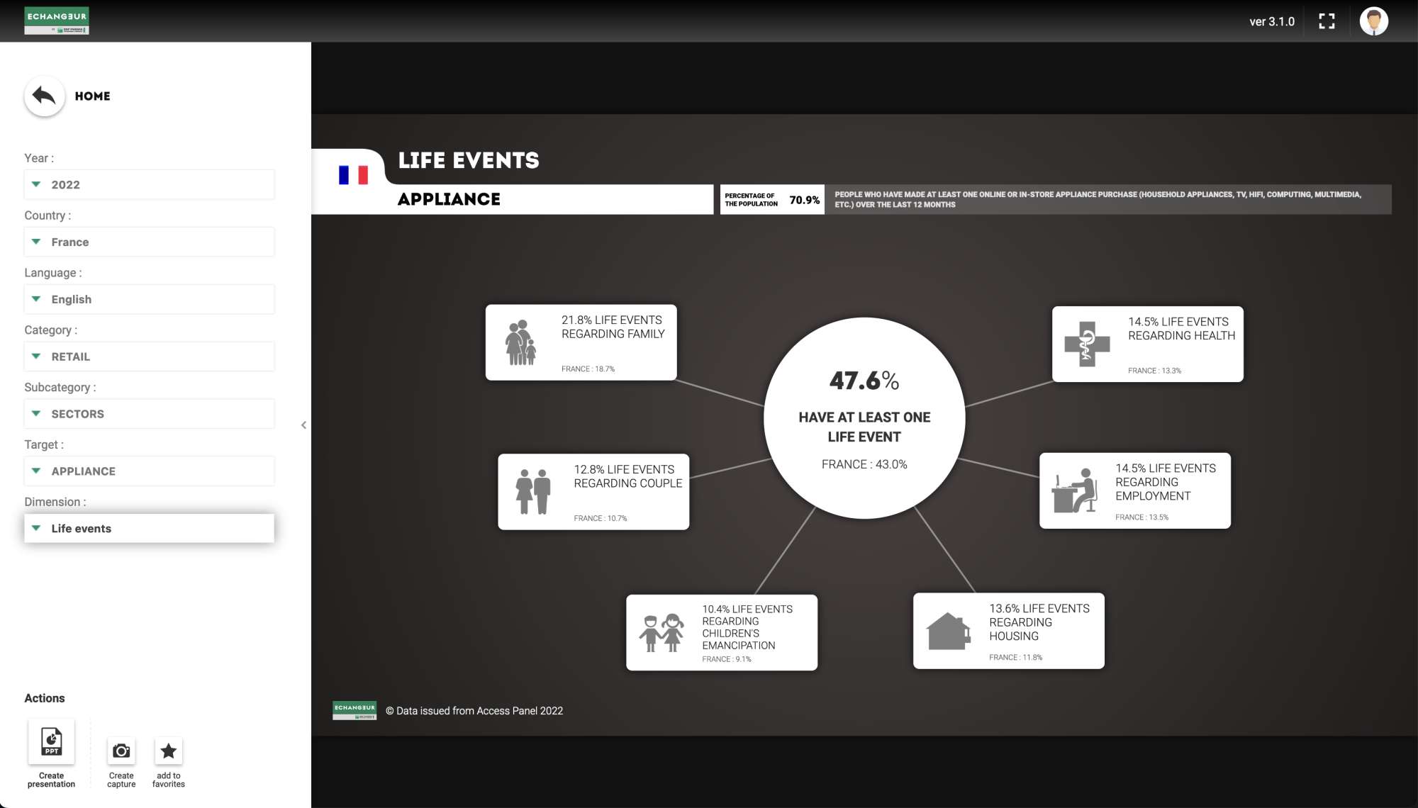 Extension synchronisée du showroom Echangeur, à portée de l’ensemble des unités pays de la BNP. La technologie adapte l’environnement de datavisualisation au standard HTML et permet la consultation administrée de l’ensemble des données de d’analyse de l’Access Panel.