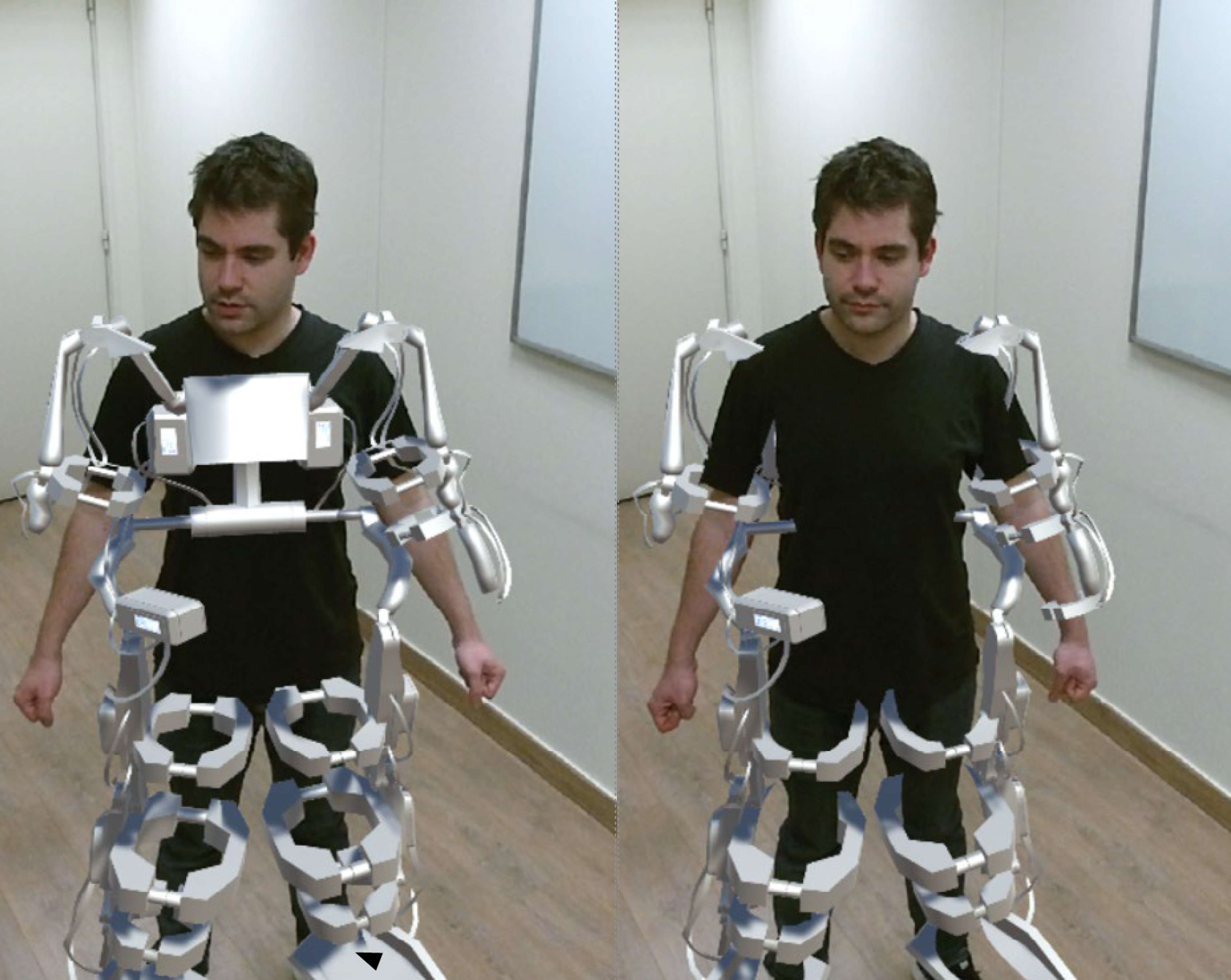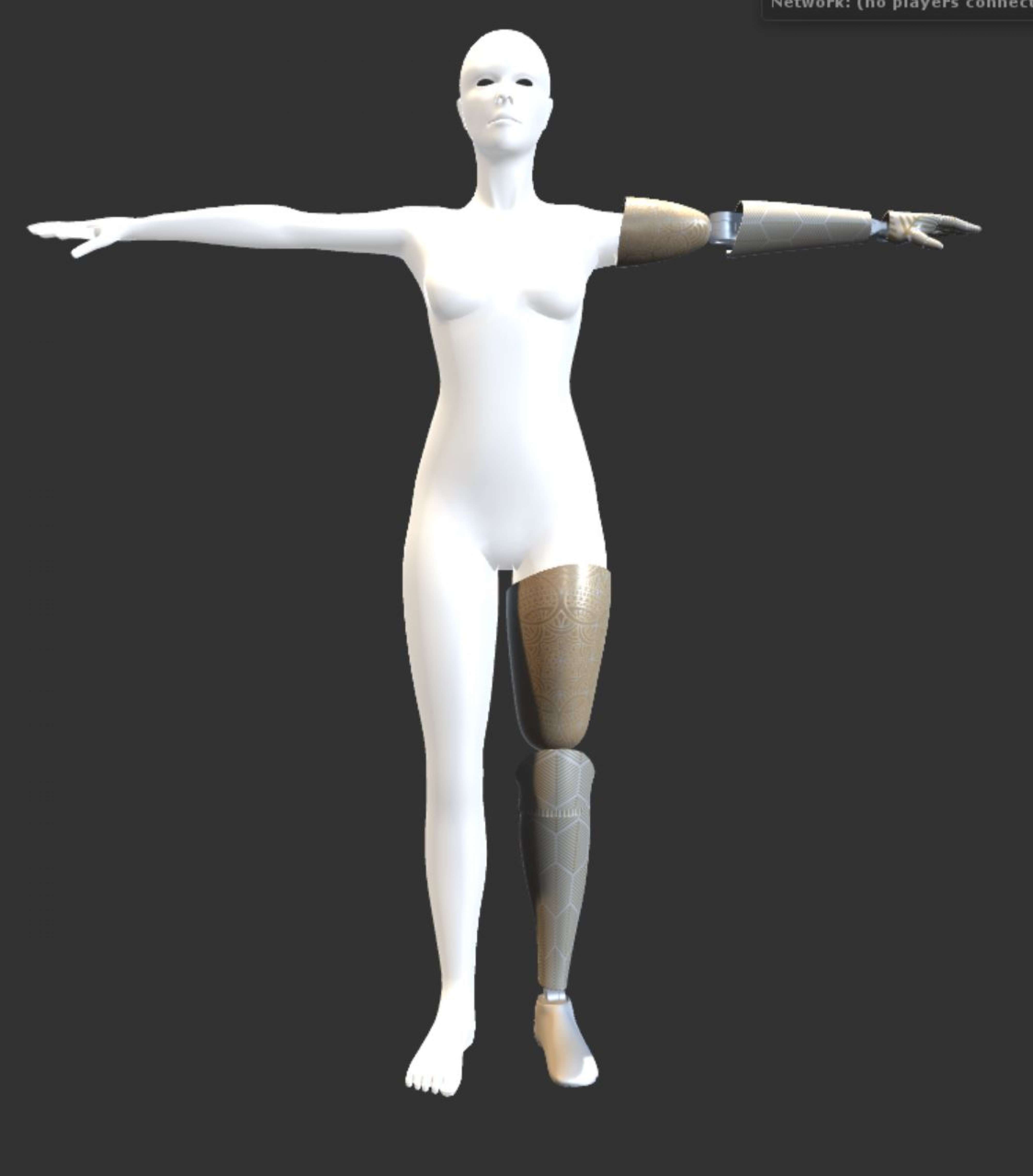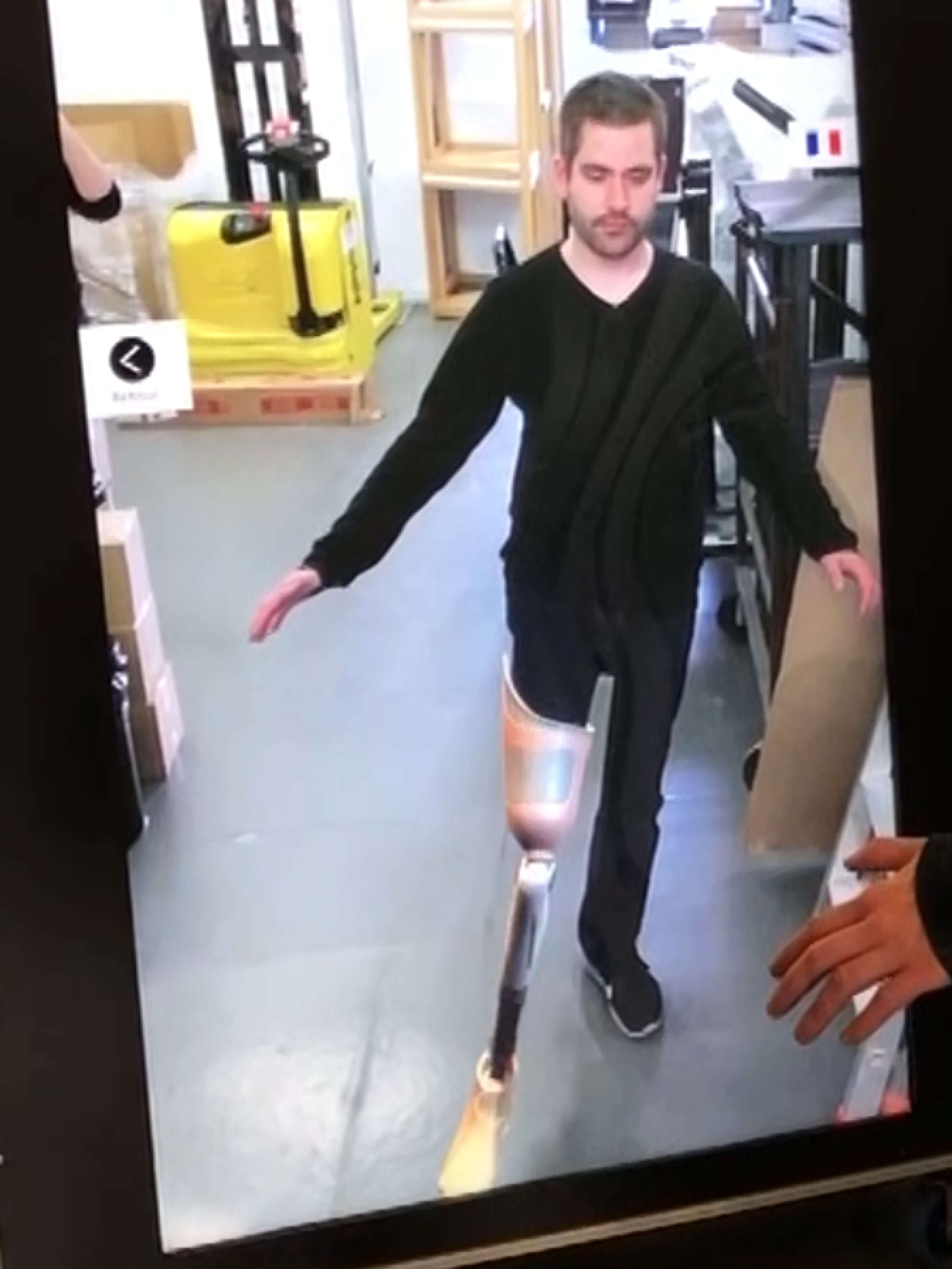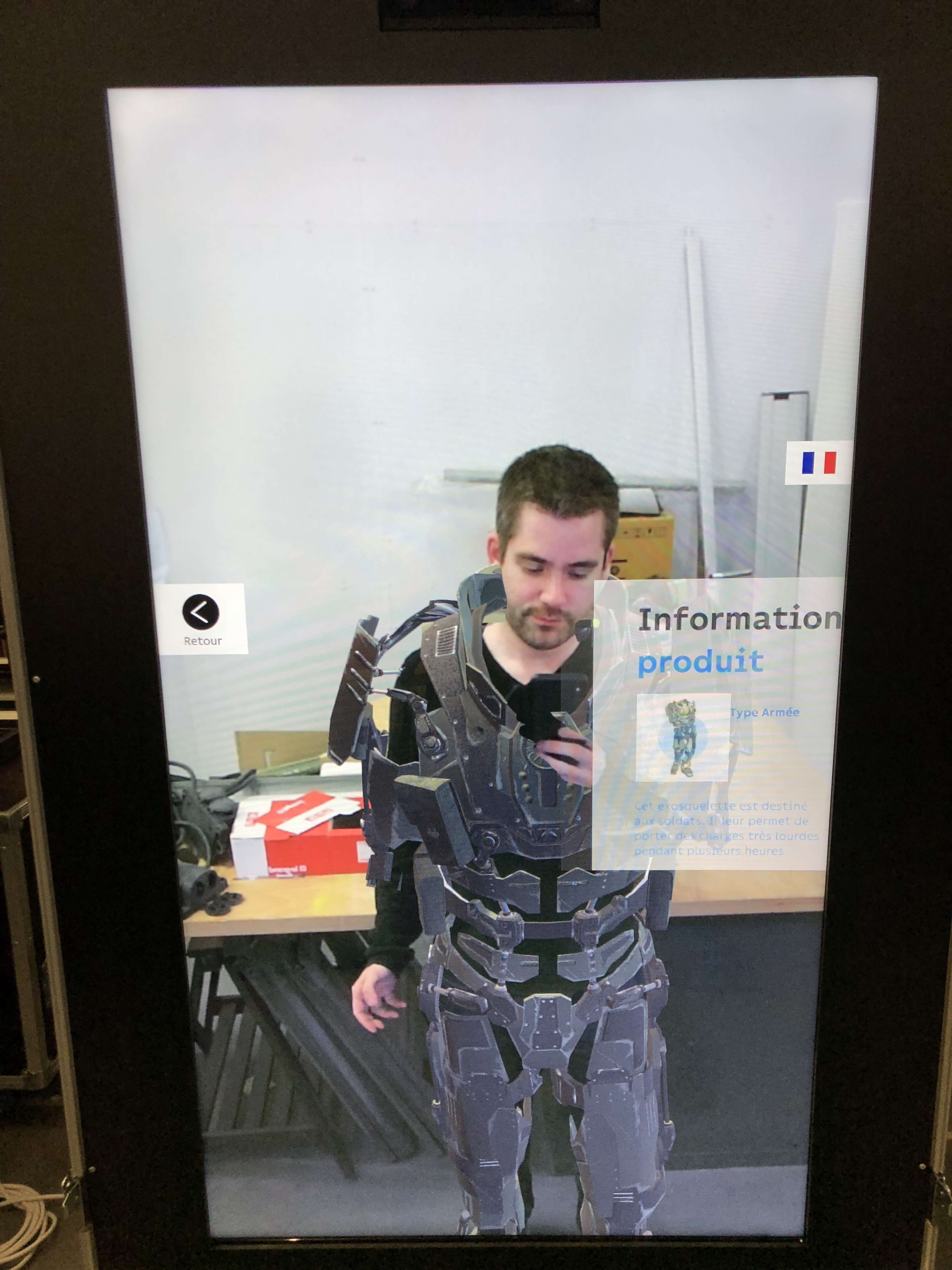 L’œuvre réalisée permet au visiteur de se découvrir avec des prothèses et exosquelettes, en temps réel ! Le rendu est réaliste et présente une technique inédite de d'occlusion/substitution intelligente des membres corporels.