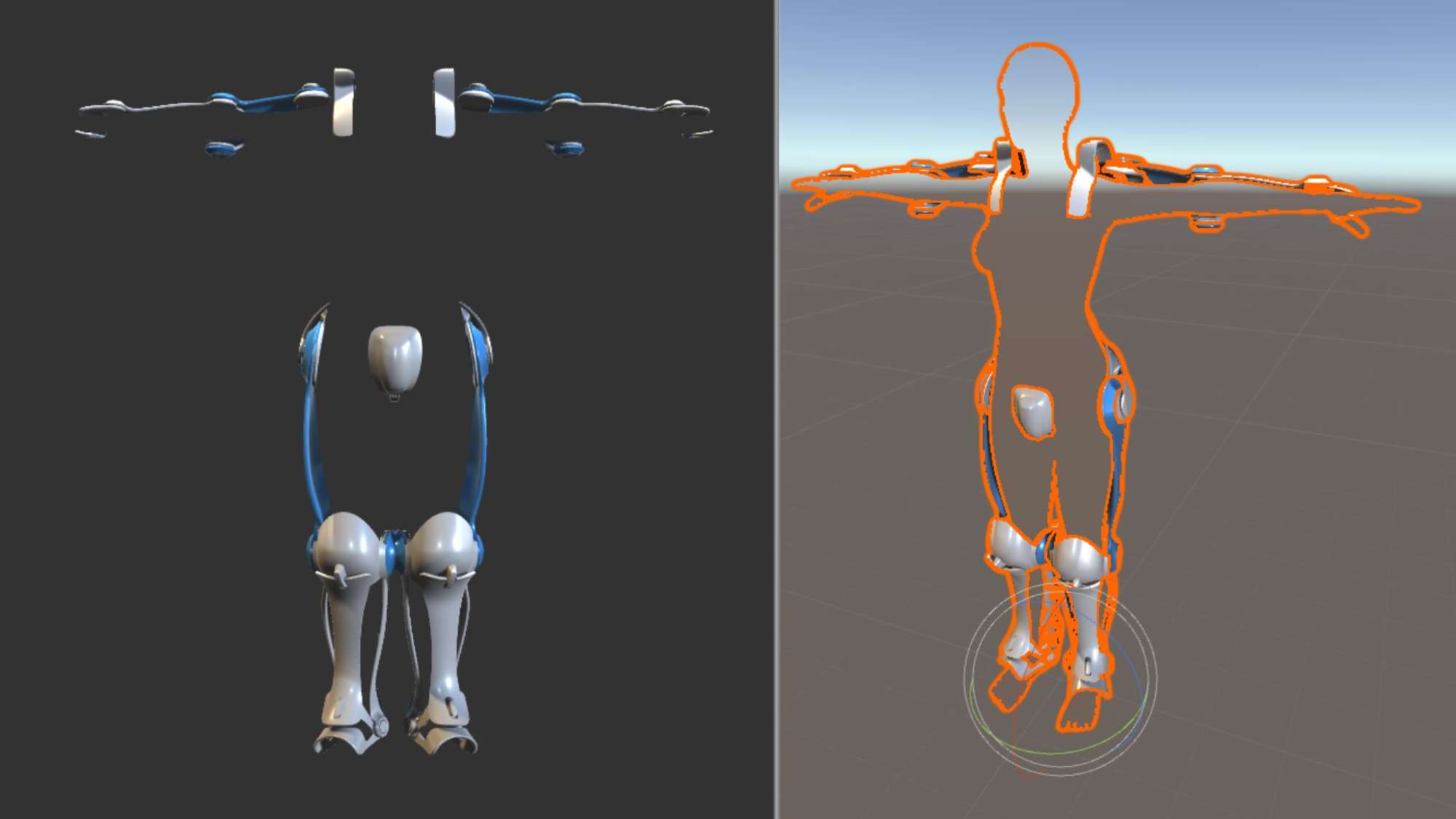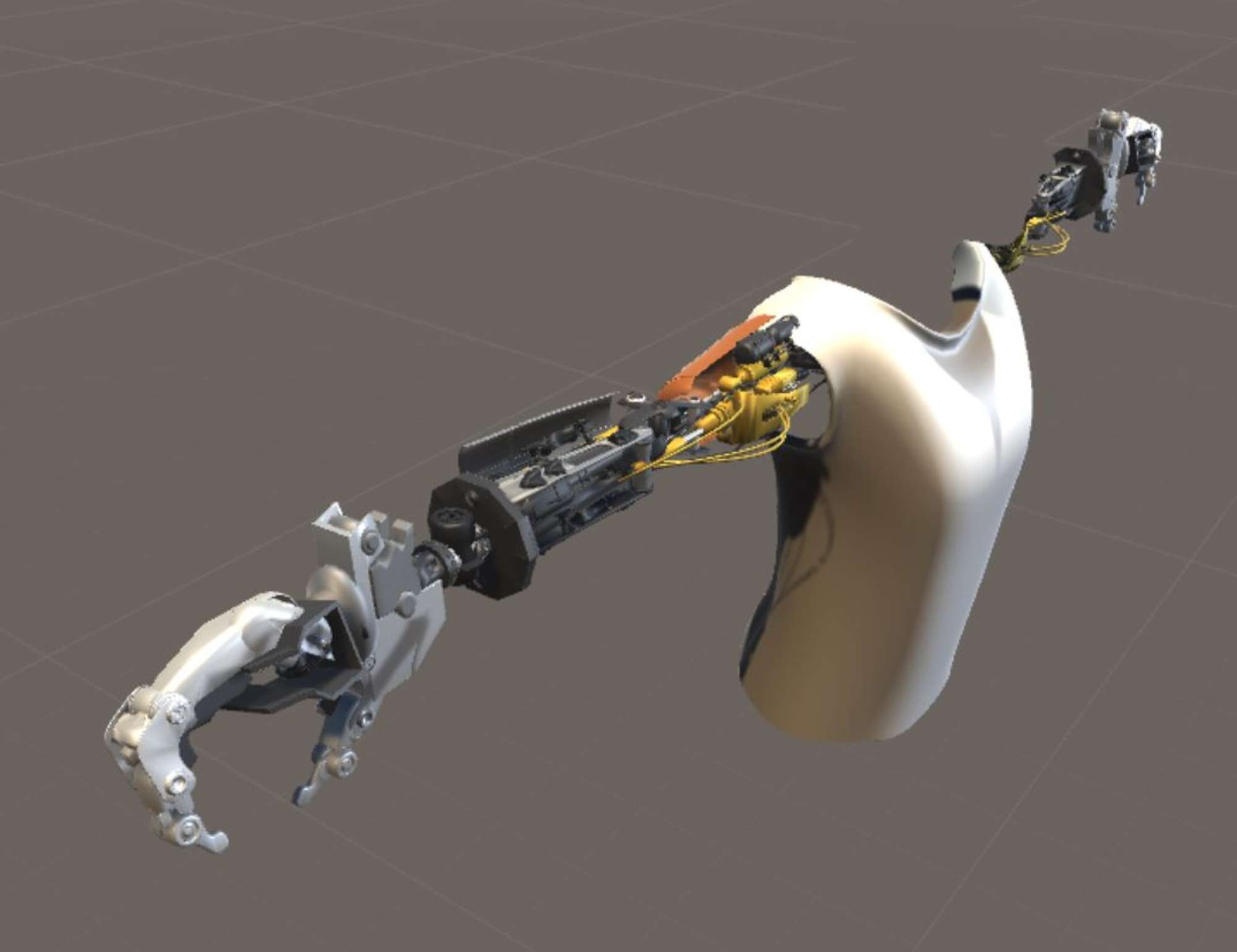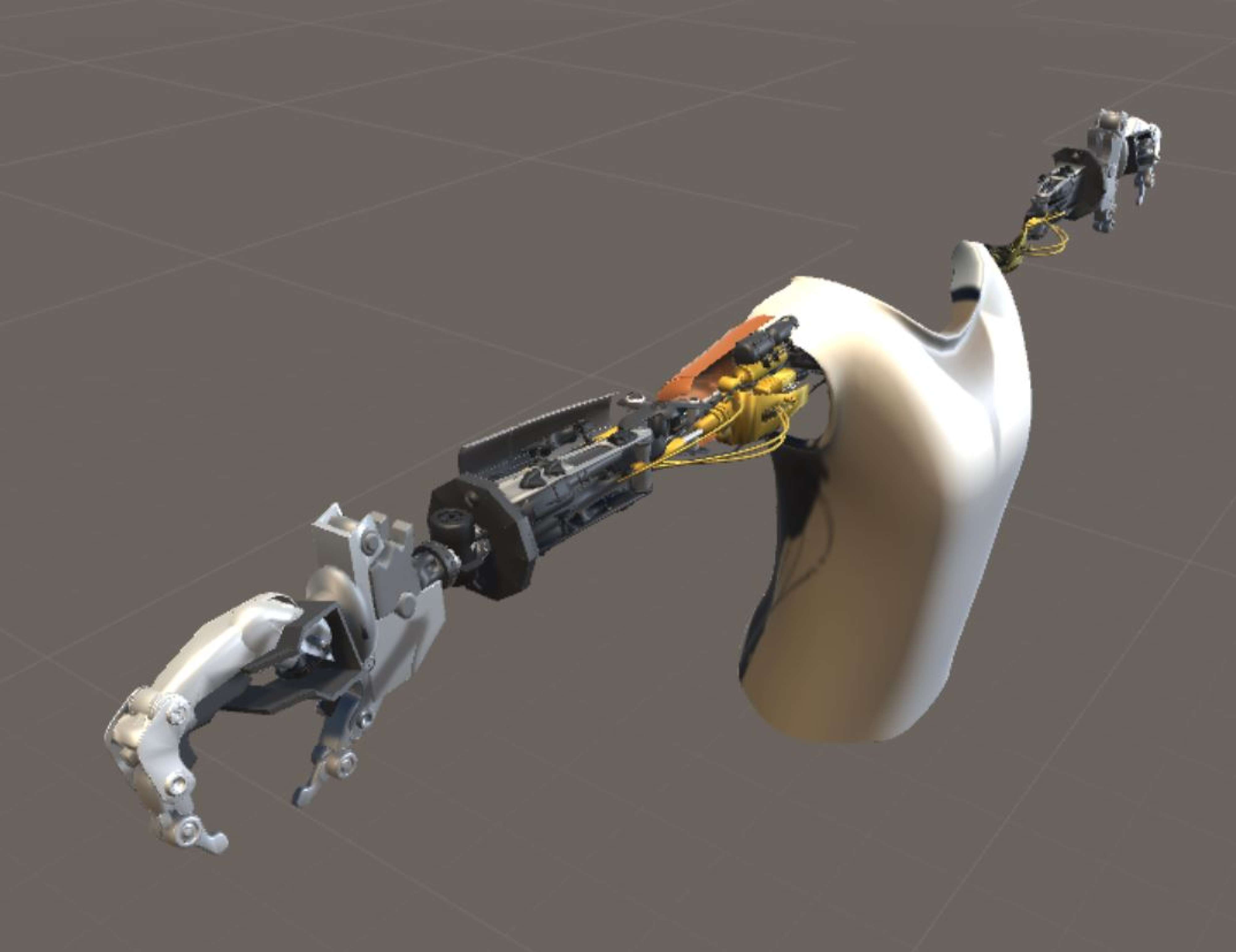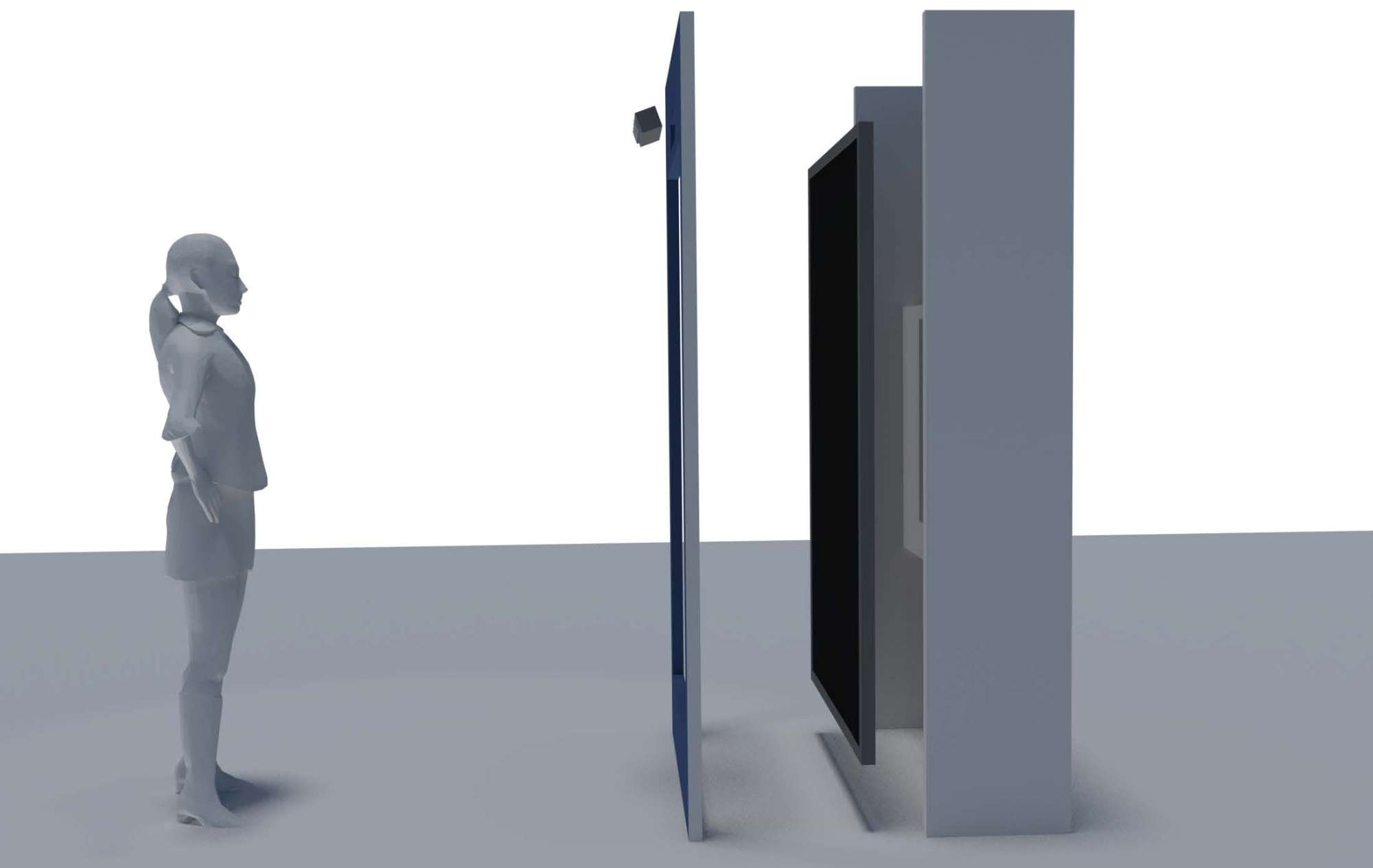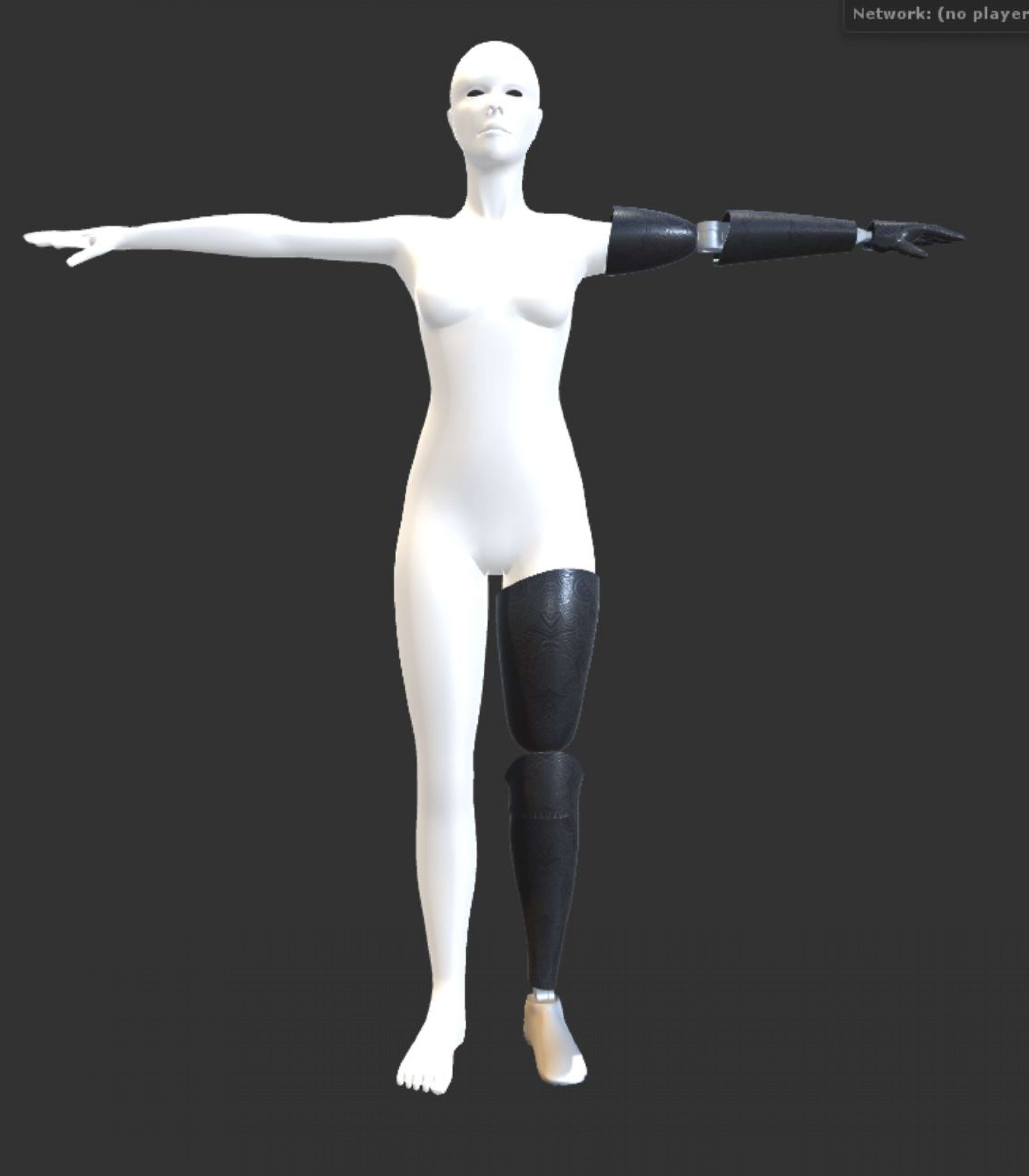 L’œuvre réalisée permet au visiteur de se découvrir avec des prothèses et exosquelettes, en temps réel ! Le rendu est réaliste et présente une technique inédite de d'occlusion/substitution intelligente des membres corporels.