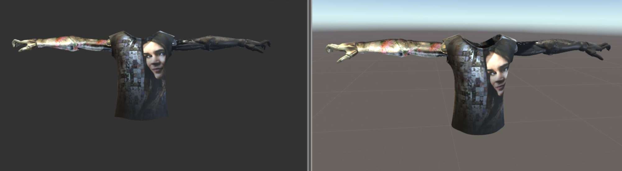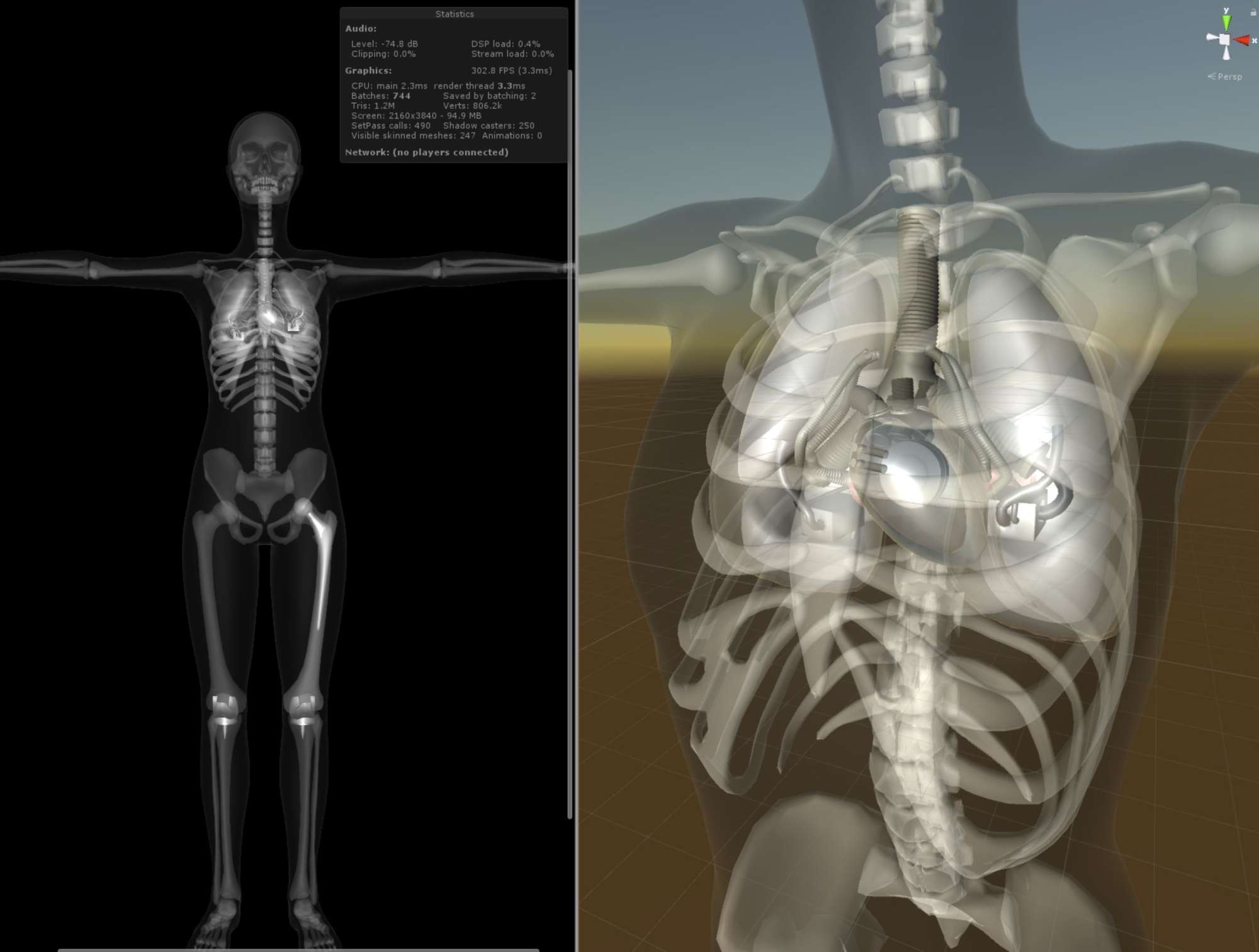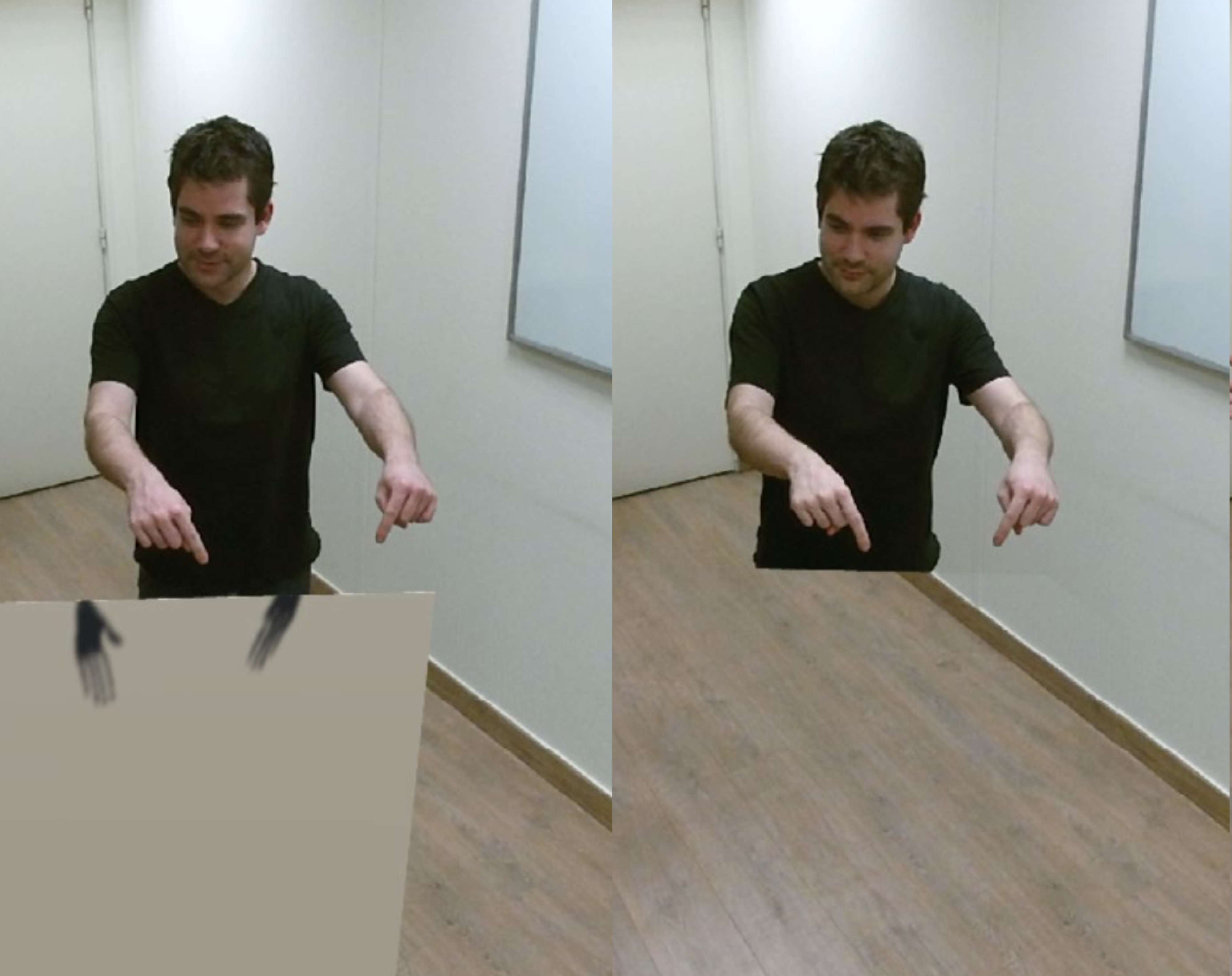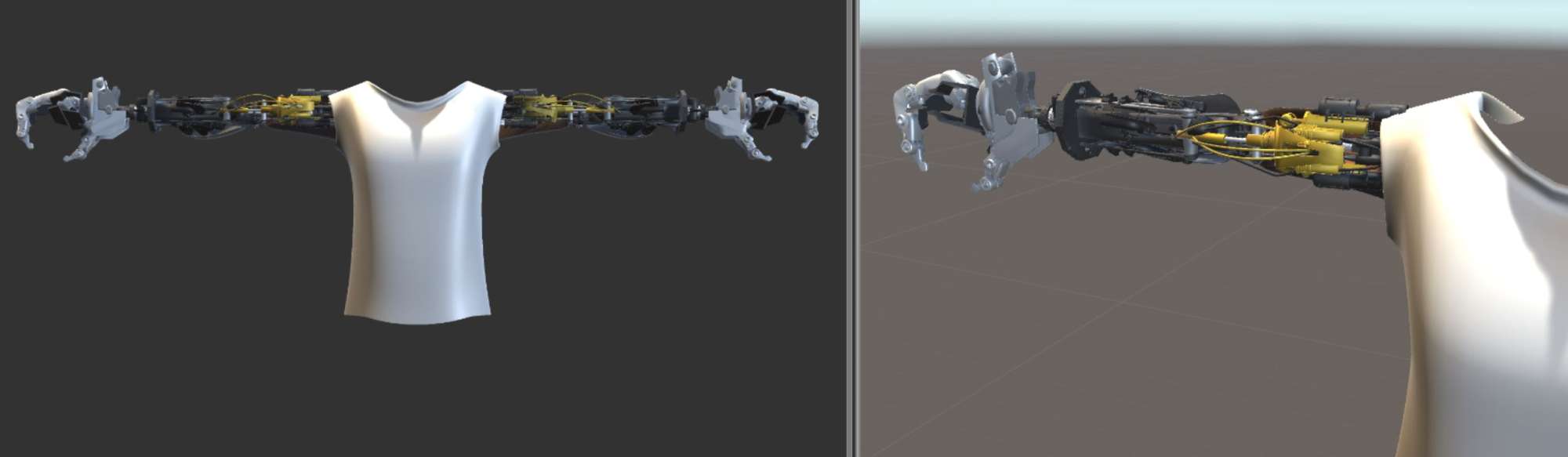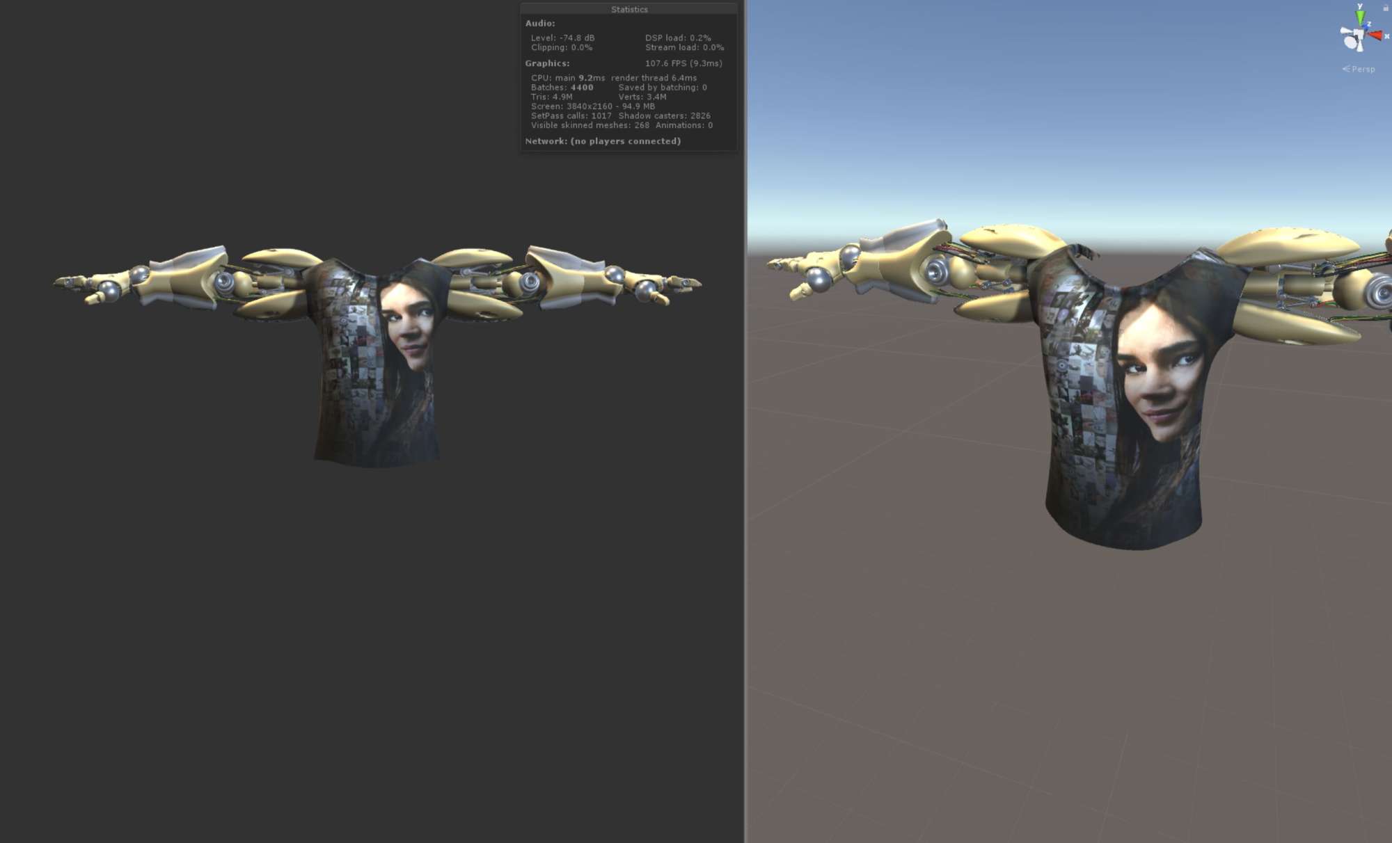 L’œuvre réalisée permet au visiteur de se découvrir avec des prothèses et exosquelettes, en temps réel ! Le rendu est réaliste et présente une technique inédite de d'occlusion/substitution intelligente des membres corporels.