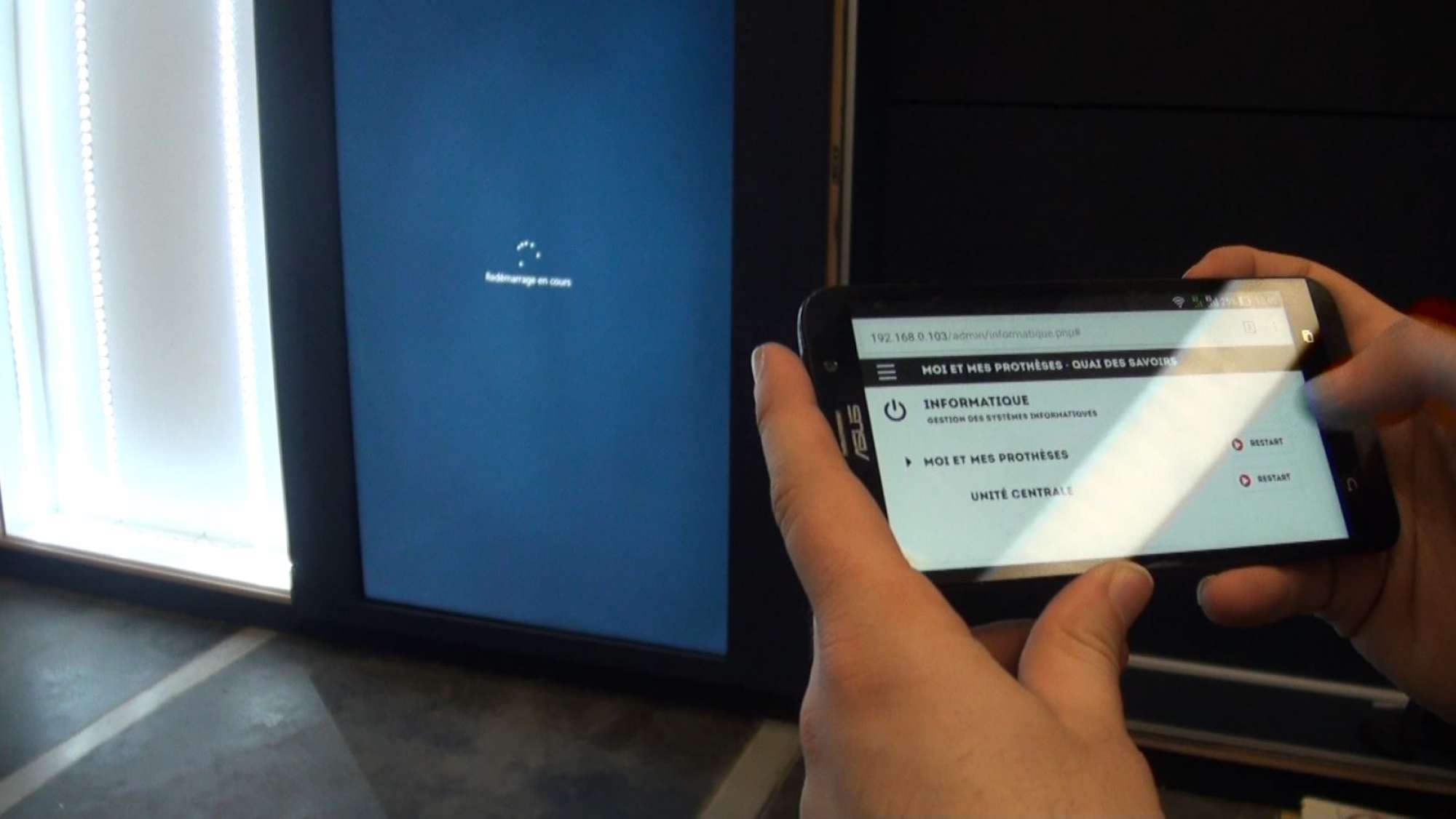 Une interface réseau est aussi élaborée pour faciliter la prise en main par le personnel d’exploitation en cas de nécessité et demeurer auprès du public : analyse d’état, amorçage, redémarrage… nul besoin de recourir au matériel du dispositif, interroger le système avec un simple smartphone suffit !