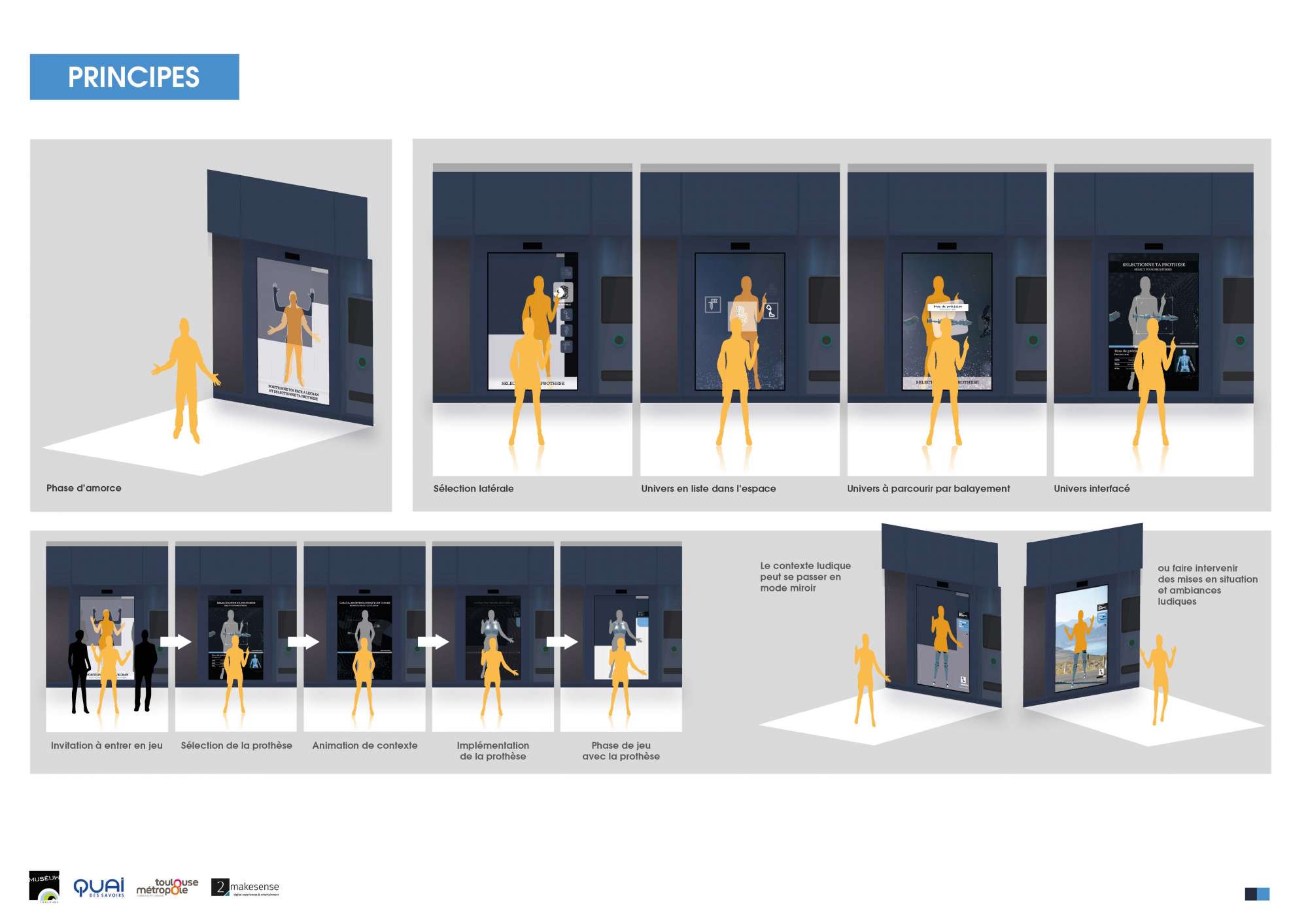 De nombreuses découverte sont rencontrés par le visiteur, dont un dispositif numérique et scénographique inédit intitulé « moi et mes prothèses » permettant au visiteur de se découvrir lui-même équipé de prothèses et exosquelettes.