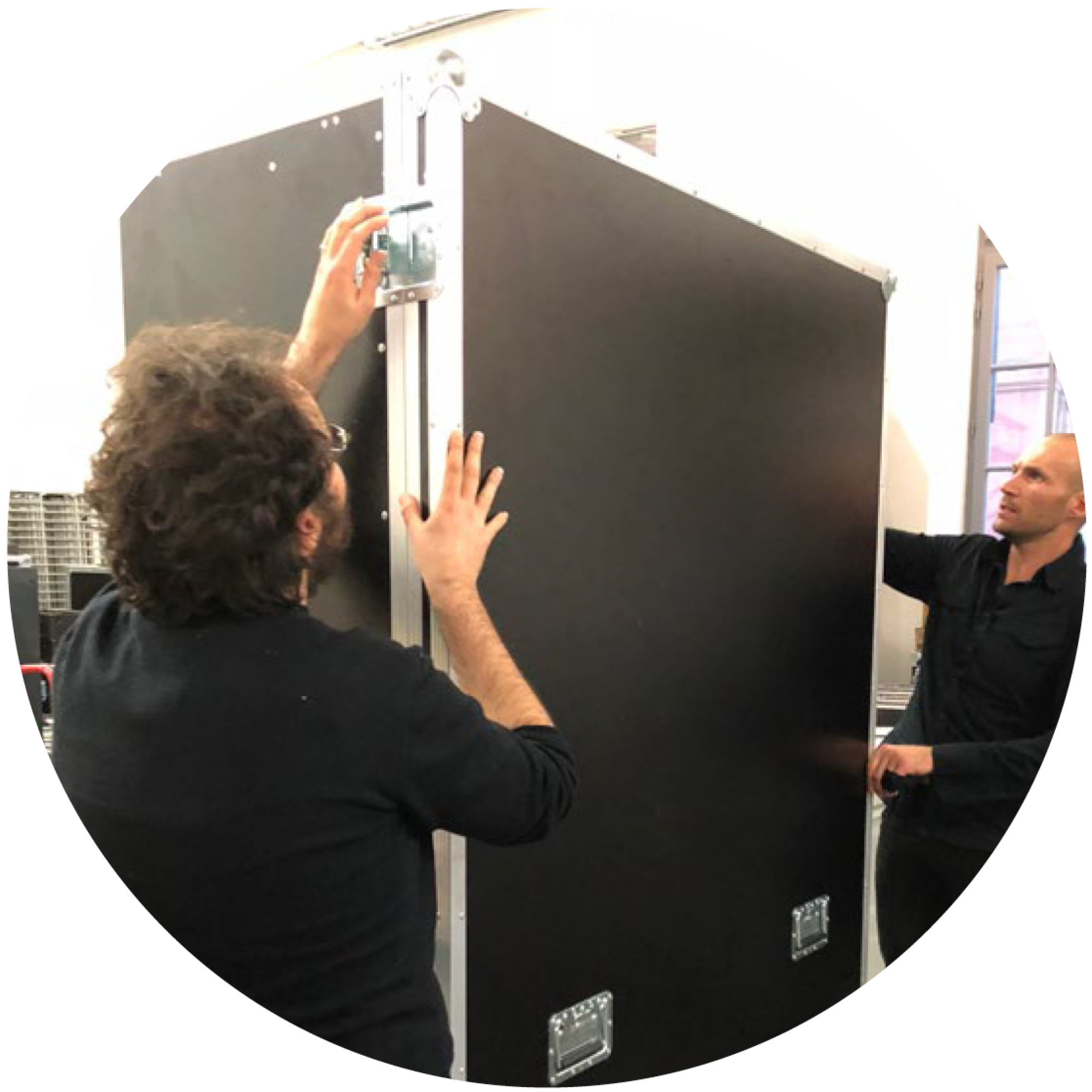 L’ensemble du dispositif est imaginé pour prendre place au cœur de l’exposition, tout en tenant compte des contraintes scéniques.