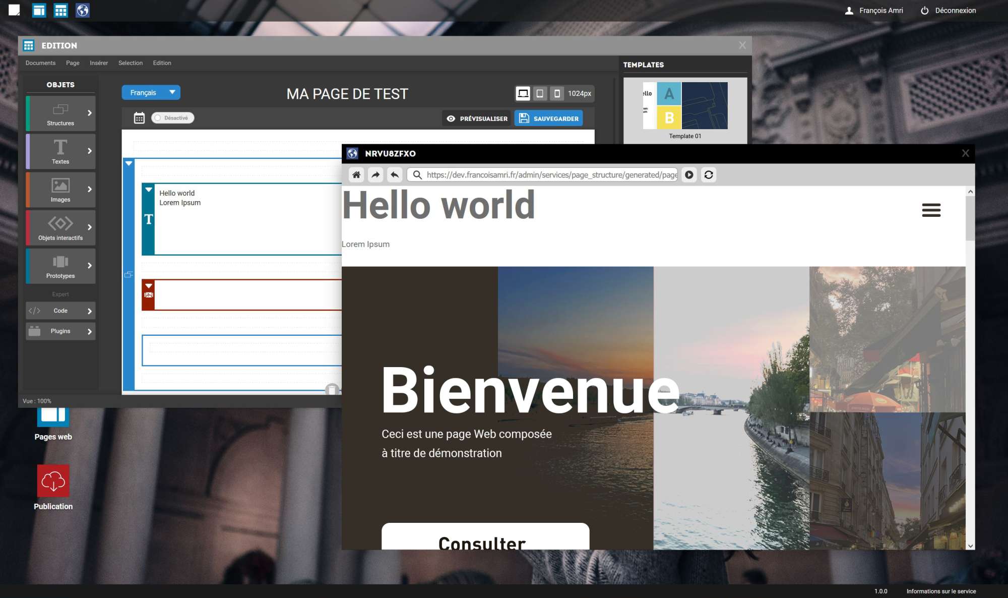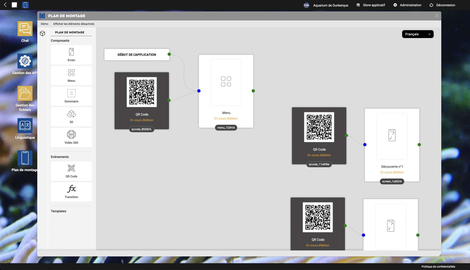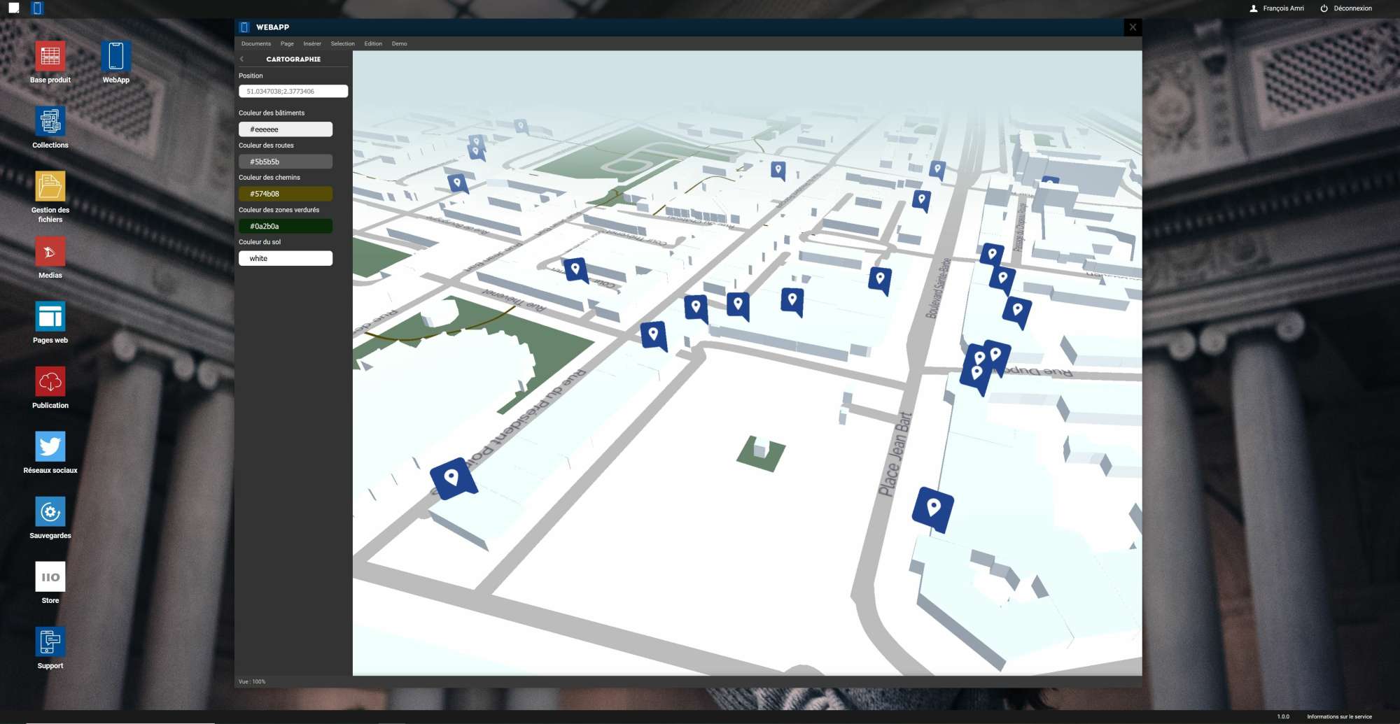 L’interface est un cloud accessible en ligne ou domiciliable sur ses propres supports d’hébergement. Apportant la dimension intuitive et novatrice de la conception, elle met ainsi à portée des utilisateurs nos savoir-faire et à travers ses briques servicielles une nouvelle façon de concevoir et d’administrer facilement et en un temps record des solutions numériques évoluées, pour rendre accessible et à portée humaine la création de projets innovants et à forte valeur ajoutée.