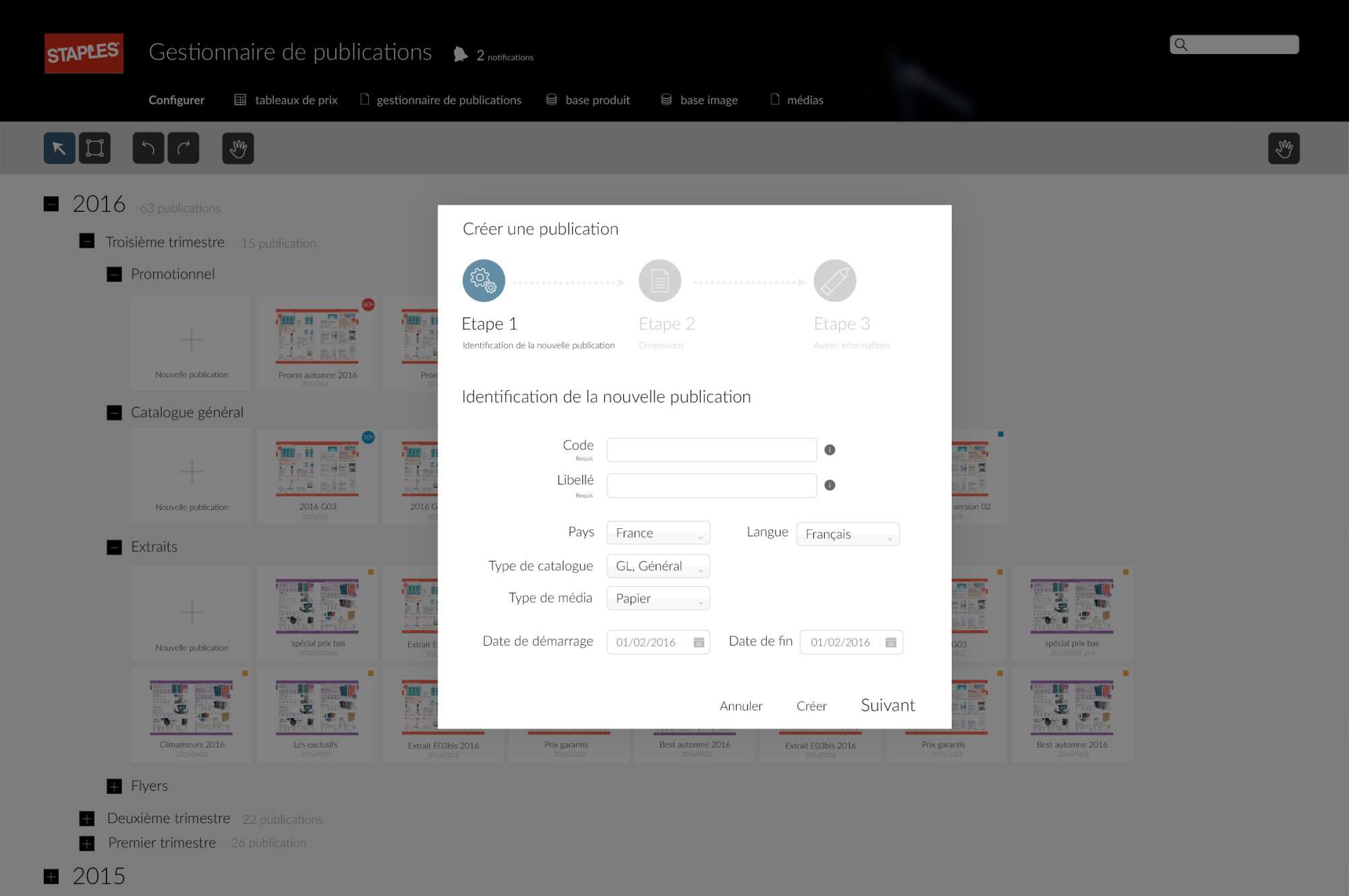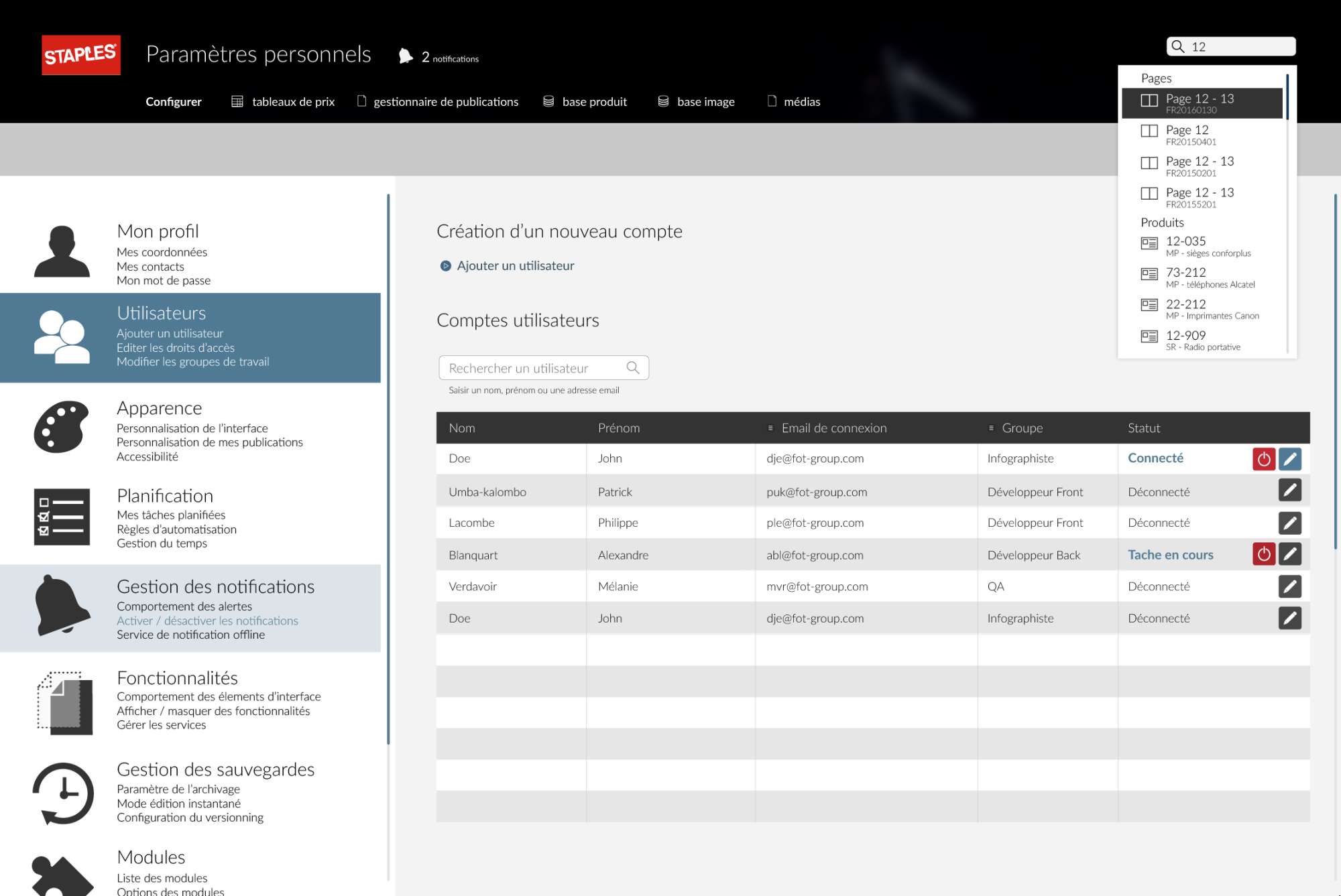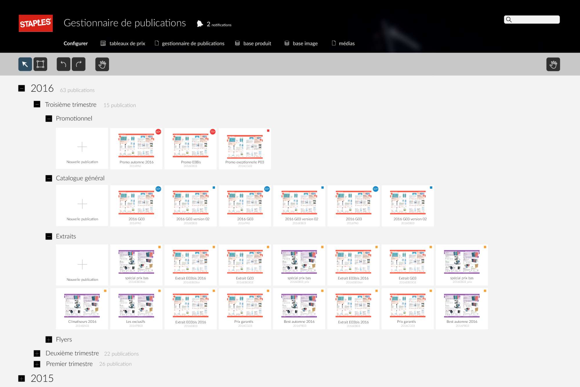 La charte livrée refond l’homogénéité fonctionnelle et implémente à ce titre la gestion/suivir de workflows quantitatifs et les espaces de collaboration. Sans dépendance à un poste, l’utilisateur peut à présent monter directement au sein de l’outil ses assortiments d’offre (en base produit et en page), gérer en interliaison dynamique ses ressources et bases produit, précomposer, animer des campagnes, accéder aux médias et leurs reconductions, ainsi que suivre les avancées productives.
