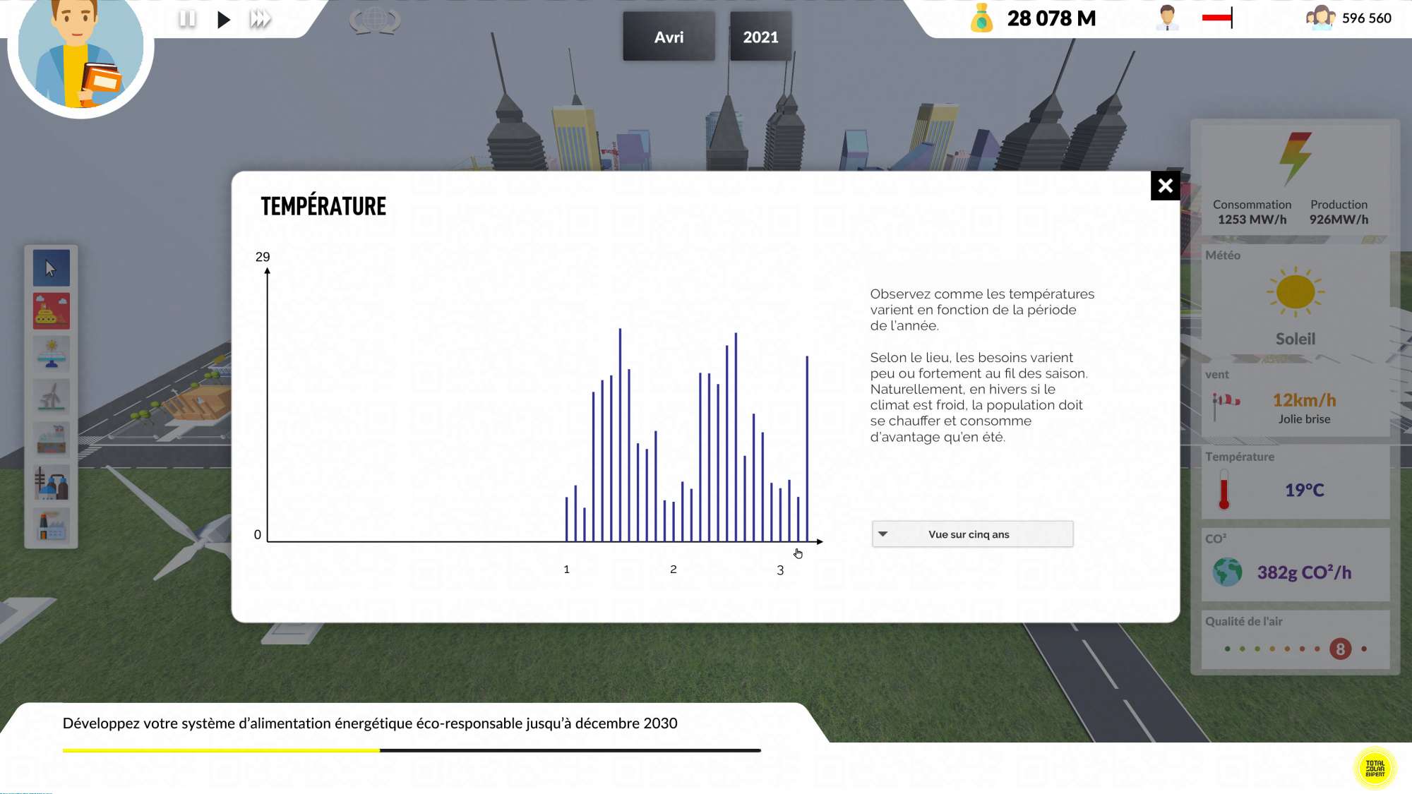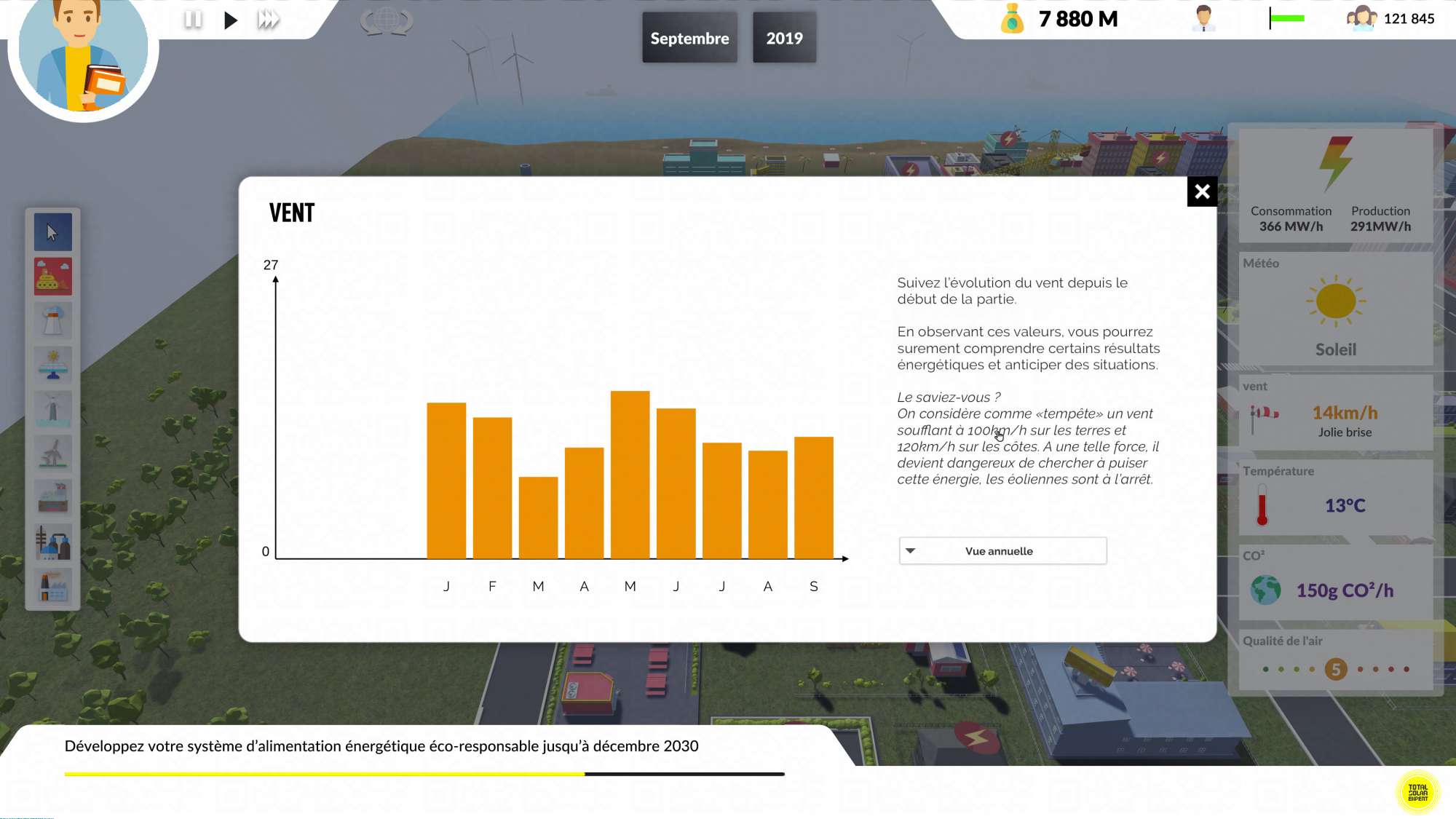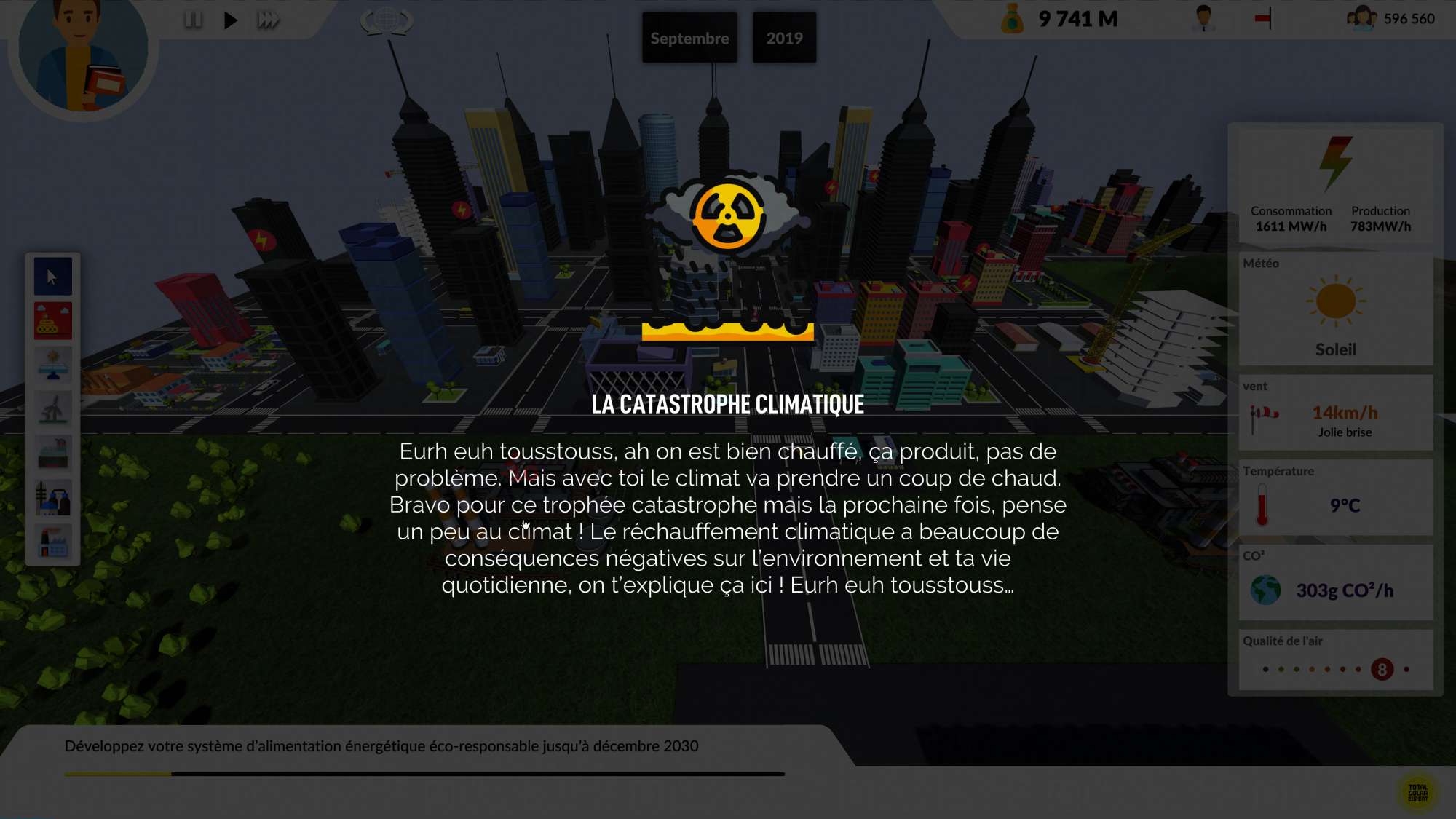 Pour couronner le tout, les élèves peuvent interagir en même temps, impacter un budget commun et produire des répercutions générales. Vous posez ou détruisez une centrale ? l'ensemble des conséquences s'étend donc aux autres !