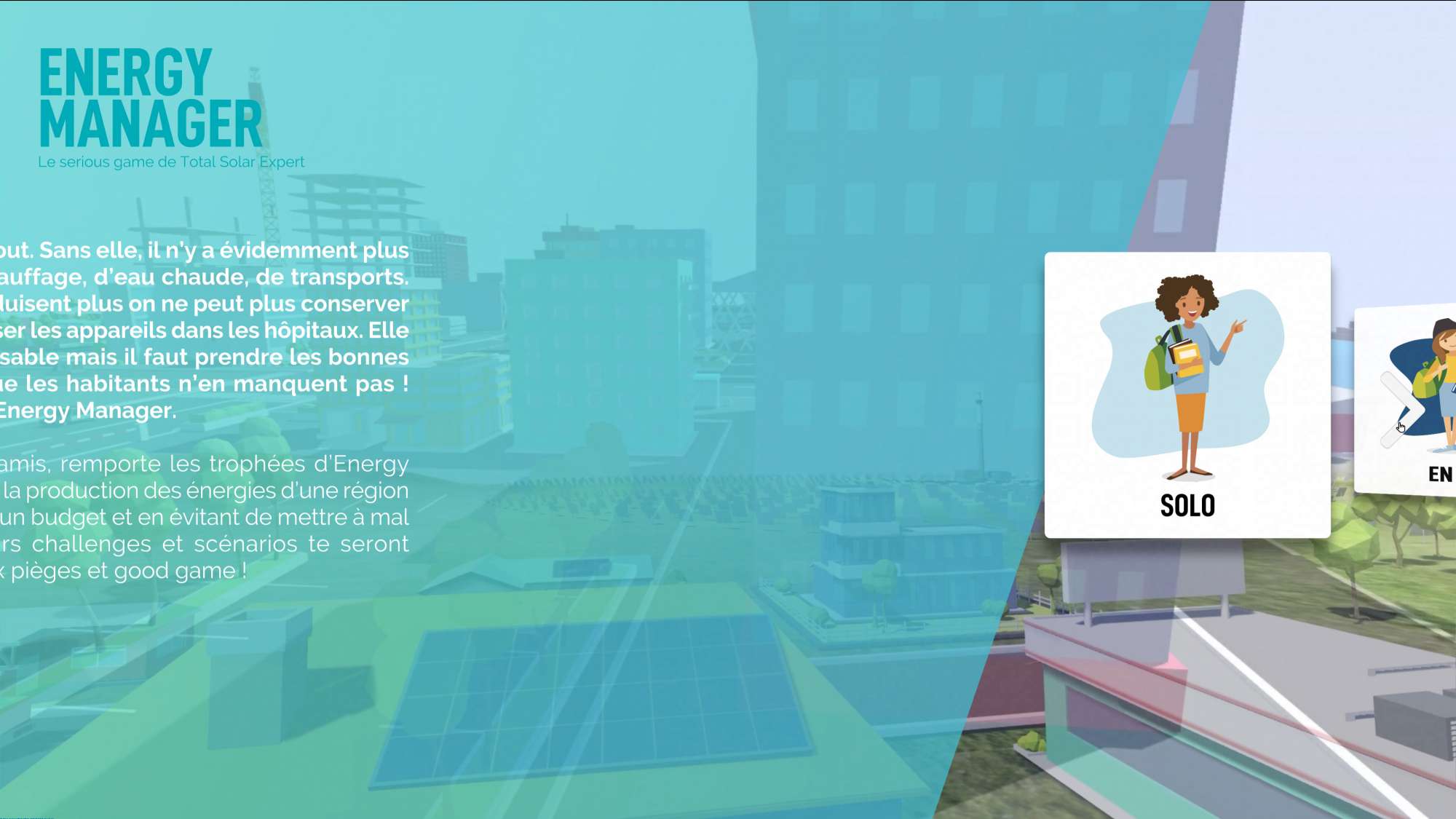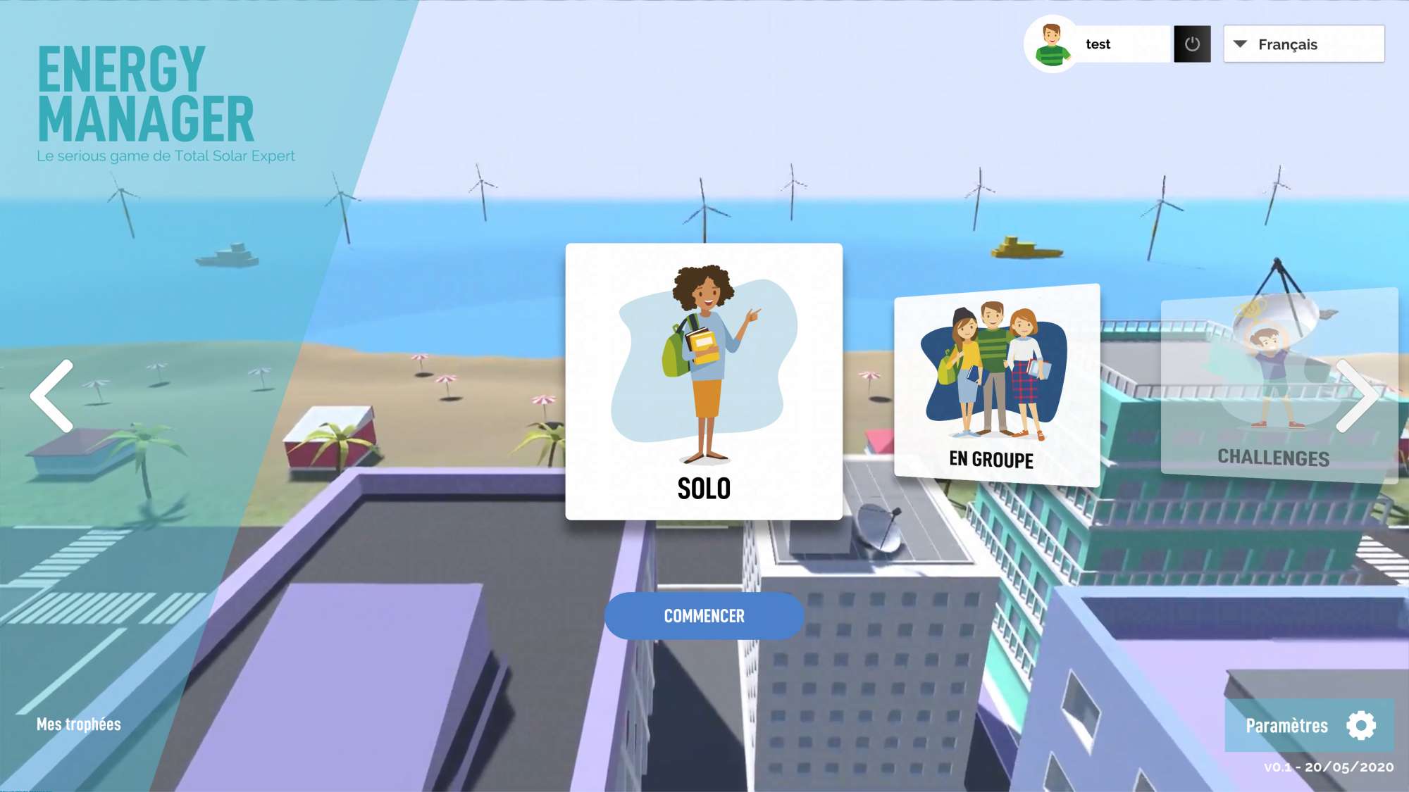 Energy Manager est un jeu online, sans pluggin requis, conçu pour sensibiliser au mix énergetique et répondre aux attentes méthodologiques des établissements scolaires. Ensemble, professeurs et élèves peuvent, seuls ou en groupe, expérimenter et résoudre les chalenges du mix-énergétique, dans des simulations environnementales s'appuyant sur des données réelles.